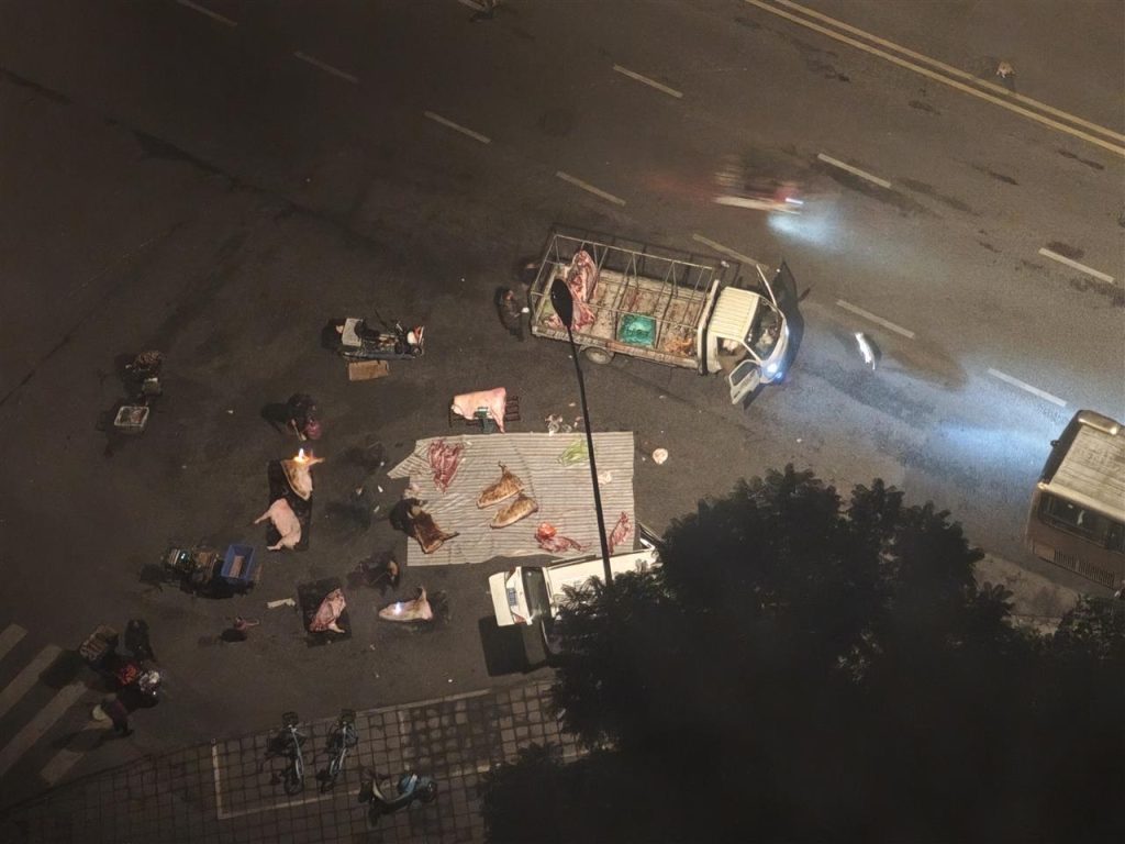 11月13日,成都成华区驷马桥路附近被市民爆料:有人凌晨运来大量猪肉,直接在马路边地面上分割处理,场面让人直呼“后怕”。14日凌晨,成华区综合执法局联合市场监管、农业水务、街道和派出所等多部门,组成30多人调查组进行现场巡查。