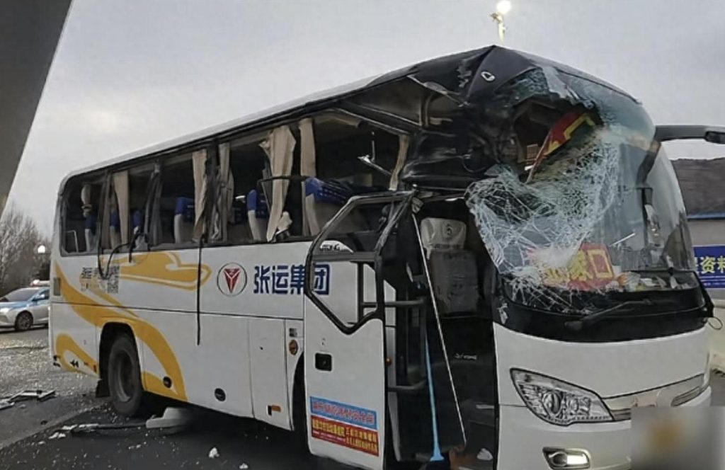 11月15日下午,河北张家口市北高速出口附近发生一起交通事故,一辆大巴车与一辆运输风力发电桨叶的大货车发生碰撞,现场画面让人后怕。