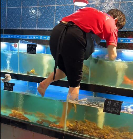 画面细节让人无语:女子脚下的海鲜池贴着“对虾”标牌,池里还泡着活虾。评论区炸裂,不少人吐槽:“这卫生操作离谱”“脚滑了不只是虾遭殃,人也危险”。有人更直言,这种场景让人对食品安全彻底失望。