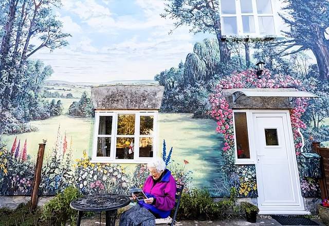 在英国萨默塞特郡格拉斯顿伯里附近,一个94岁的奶奶穆丽尔·贝克,用自己的方式重新定义了“养老生活”。她是个土生土长的乡村女孩,一辈子和自然打交道,但如今年纪大了,浇水、除草这些事早已力不从心。于是,她干脆把花园“搬”到了墙上——请当地艺术家乔恩·明舒尔在自家房子侧面画了一幅巨大的花园壁画。