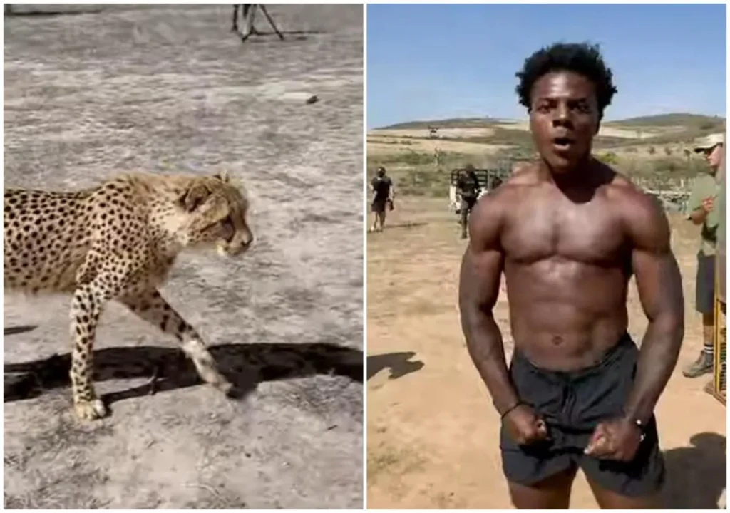 近日,美国知名网红IShowSpeed(中文昵称“甲亢哥”)发布了一段引发热议的视频,他在荒野中与猎豹进行赛跑挑战,过程惊险刺激。视频中,IShowSpeed赤裸上身展示肌肉,宣称要与猎豹一较高下。然而比赛尚未开始,他与猎豹对视时,猎豹突然伸爪攻击,在他的大腿上留下长长的血痕,鲜血直流。