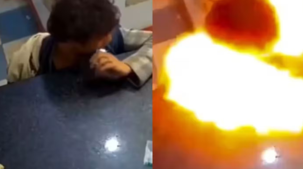 据记者报道,事发时男孩站在店内柜台附近,手中把玩着一块疑似锂电池的零部件。随后,他将该电池放入口中进行咬压。就在这一动作发生后,电池瞬间出现异常反应,伴随火焰和火花喷出,现场情况十分惊险。
