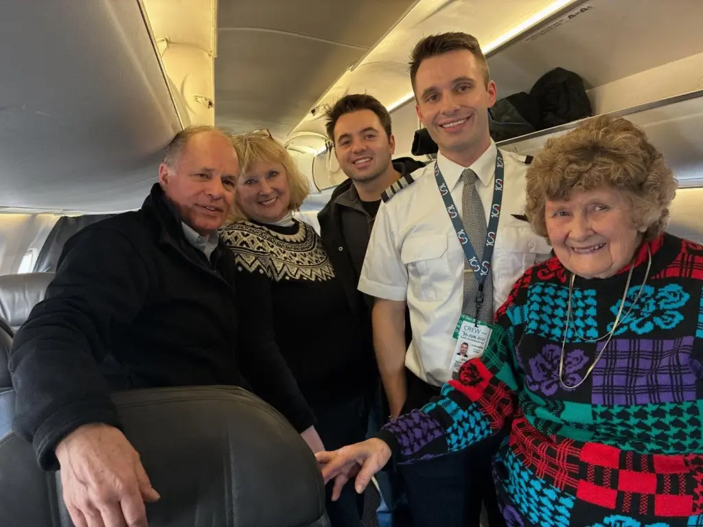 就在最近的一个周末,舒普亲自执飞航班,带着奶奶飞上蓝天。为了让这次旅程更加难忘,他还为奶奶争取到了头等舱座位,让她以最舒适的方式体验人生第一次飞行。这趟航班也具有双重意义,这是舒普第一次与父母同机飞行,父母与奶奶一同坐在机舱前部,见证这一重要时刻。
