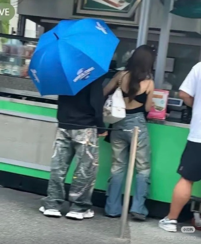 照片中,黄晓明全程为身旁女子撑着一把蓝色雨伞,替对方遮挡阳光。两人一起排队购买小吃,随后并肩在园区内漫步,几乎形影不离。期间,黄晓明多次将伞面向女方一侧倾斜,显得十分体贴,而女方也曾伸手与他一同调整伞柄,互动自然流畅,给人一种相处融洽的感觉。