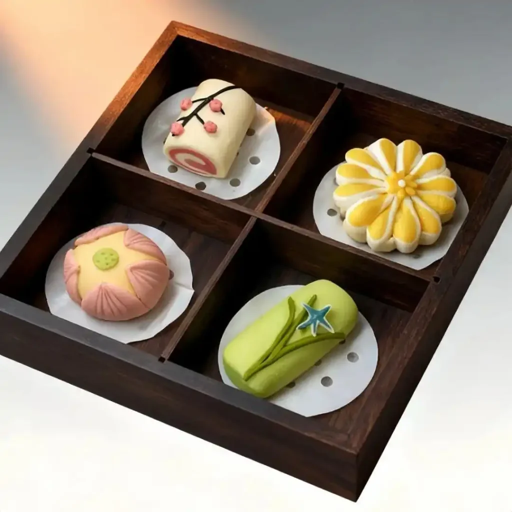 从外观设计上看,“四时芳谱”以春兰、夏荷、秋菊、冬梅四种四季名花为造型灵感,将中式审美融入传统面点之中,整体造型精致雅致,具有较强的视觉辨识度。而在内在搭配上,产品强调药食同源理念,根据不同季节特点,设计了差异化的养生馅料组合。